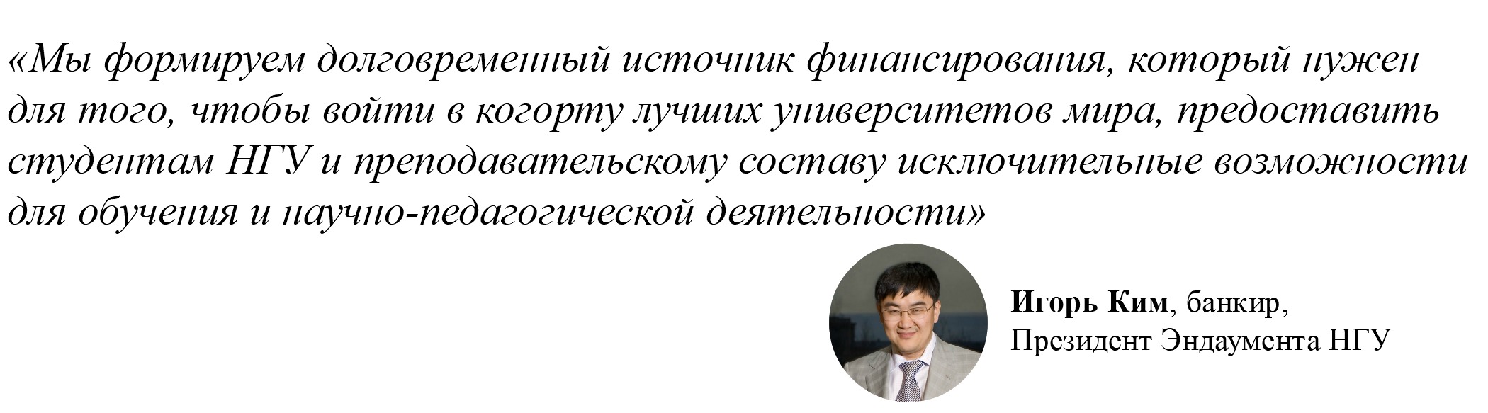 Эндаумент — это прозрачный инструмент поддержки Университета. Из взносов меценатов формируется и пополняется целевой капитал. Для финансирования проектов НГУ и СУНЦ НГУ используется доход, полученный управляющей компанией от ЦК. Отчёты регулярно публикуются на сайте Эндаумента НГУ, ежегодно фонд проходит аудиторскую проверку.